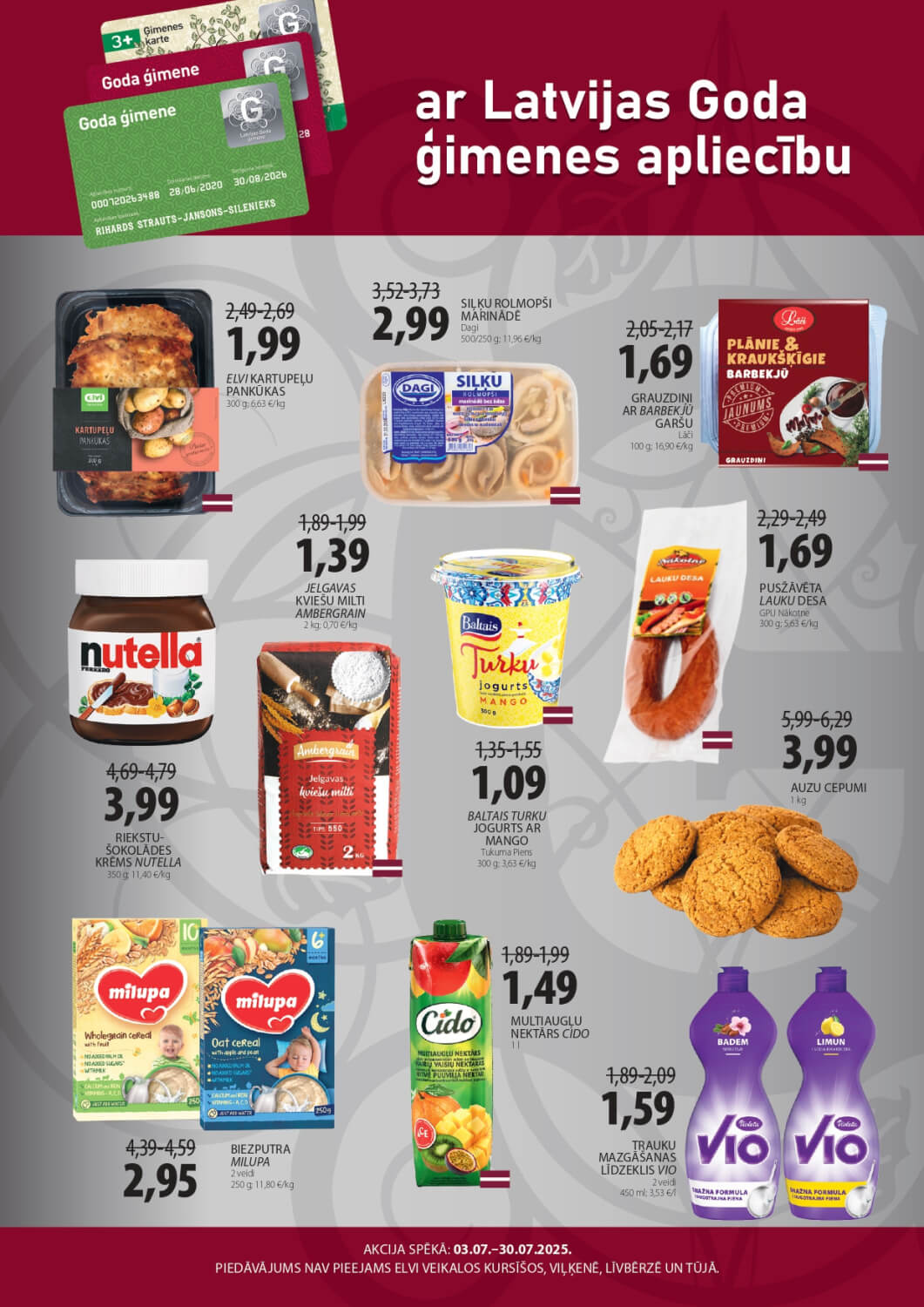 Esat Latvijas Goda ģimene? Iepērcieties veikalu tīklā ELVI un uzrādiet kasē savu Goda ģimenes apliecību. Saņemsiet 2% atlaidi visām precēm, kam nav citu akciju un īpašas akcijas cenas tikai Goda ģimenēm.