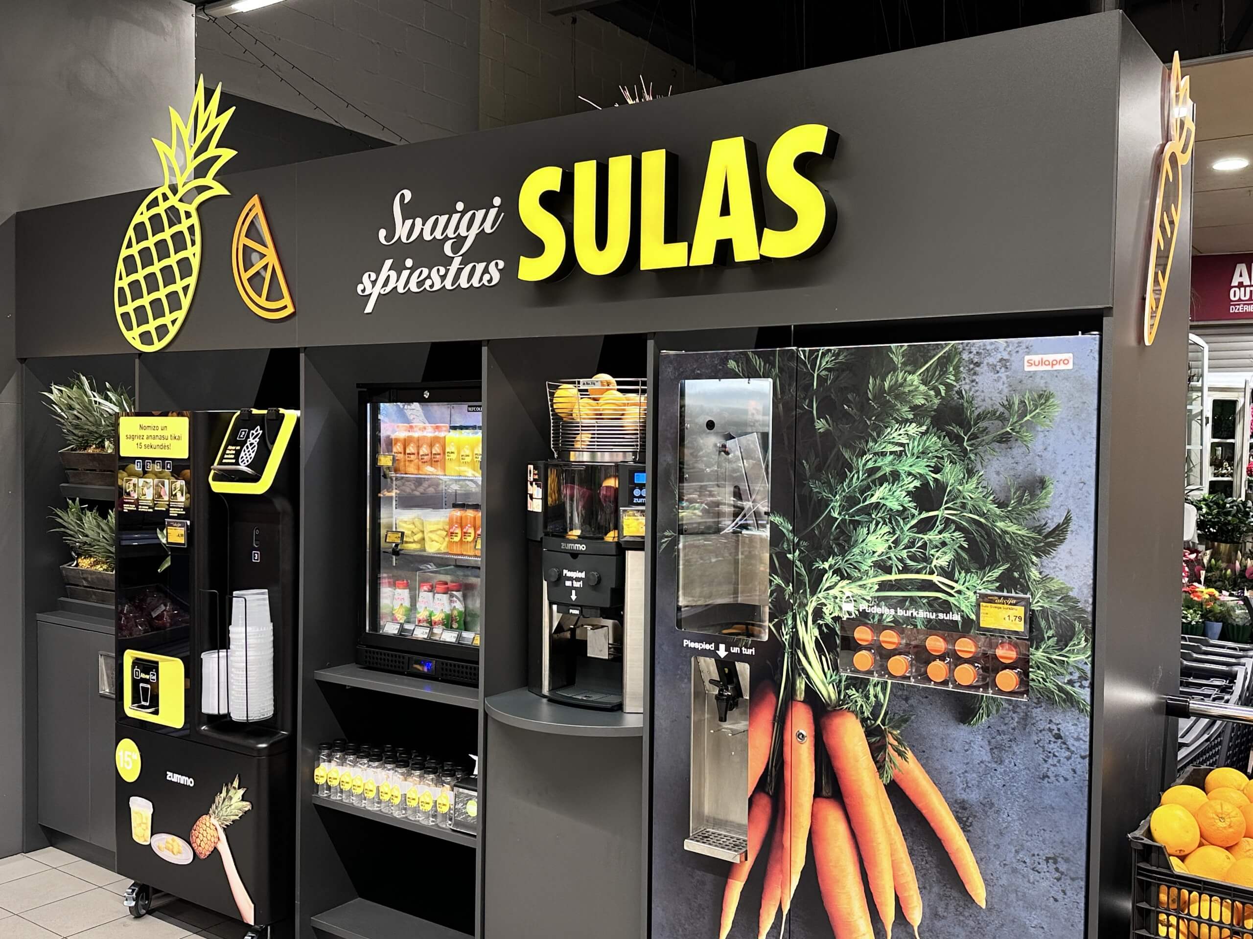 Šobrīd iekārta tiek izmantota, lai piedāvātu pircējiem svaigi spiestu burkānu un apelsīnu sulu, un burkānu-apelsīnu sulas maisījumu. Savukārt, ar augļu griešanas ierīci iespējams ērti notīrīt un sagriezt ananasus. Svaigu augļu un dārzeņu sulu spiešanas iekārtas pakāpeniski plānots uzstādīt lielākajos veikalos ELVI visā Latvijā.
