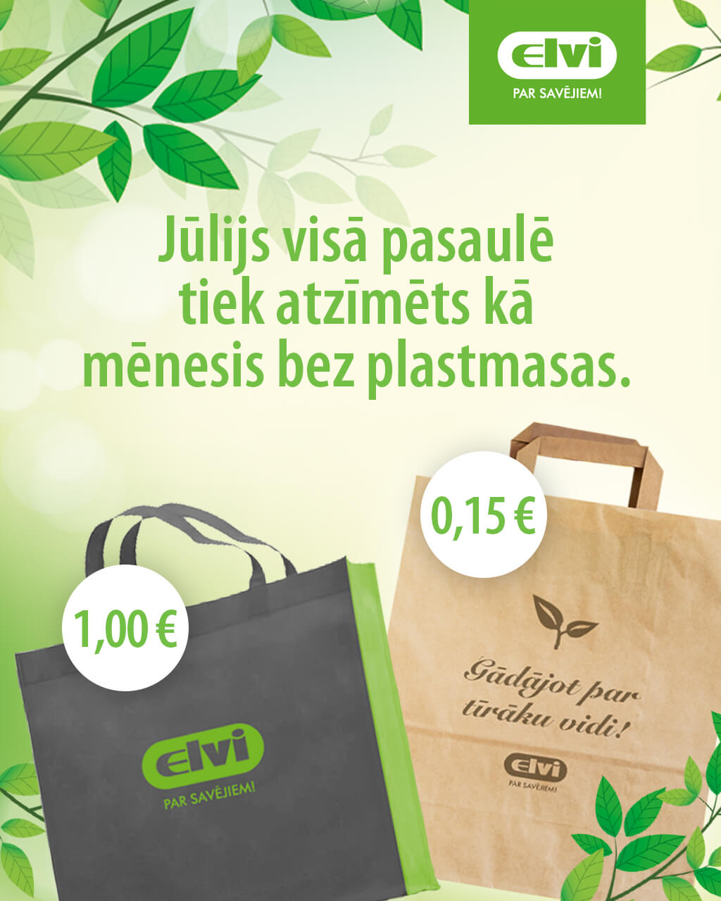 Jūlijs visā pasaulē ir mēnesis bez plastmasas! Gādājot par zaļāku dzīvi, atbalsti to un liec savus pirkumus ietilpīgajā ELVI iepirkumu somā vai papīra iepirkumu maisiņos.