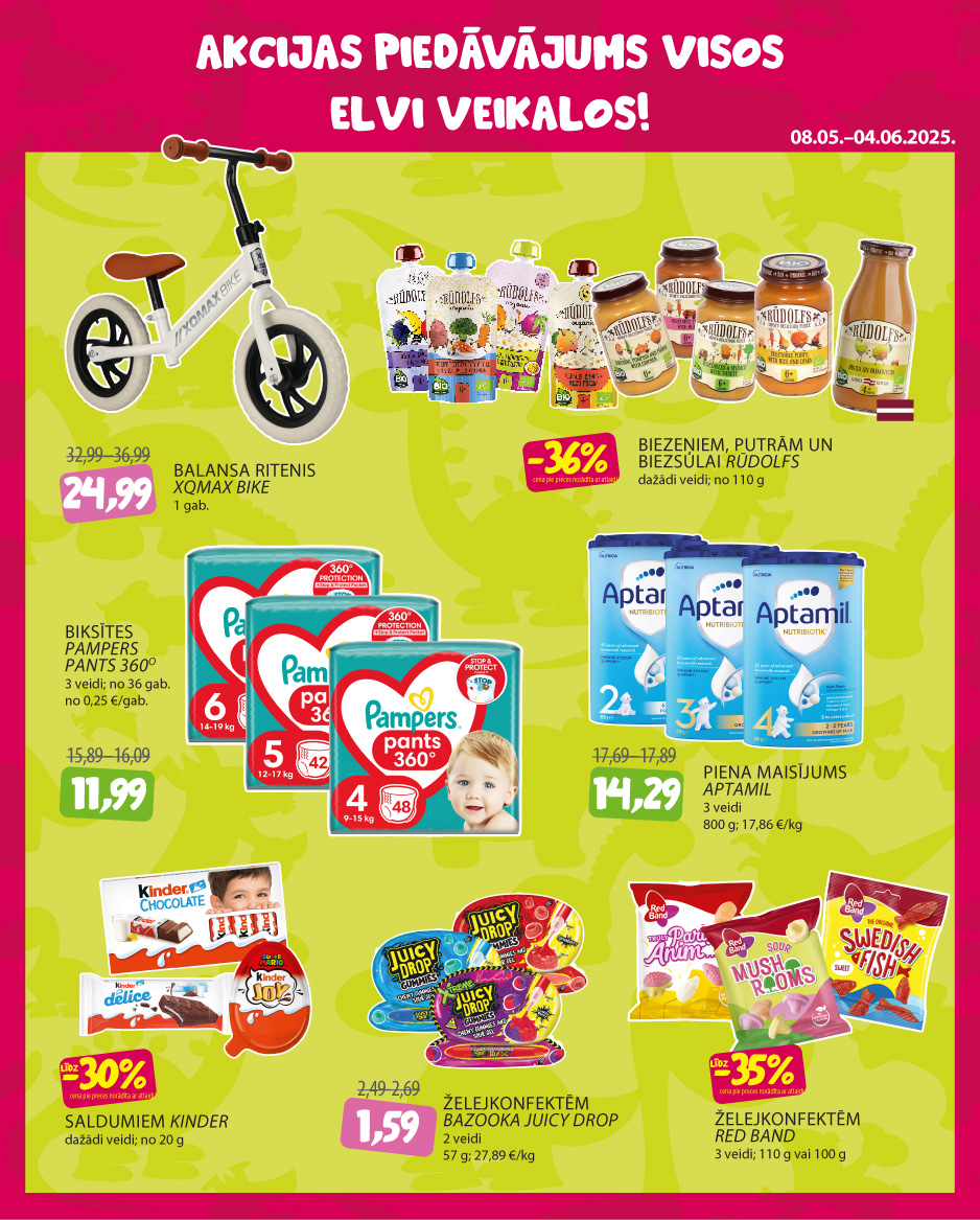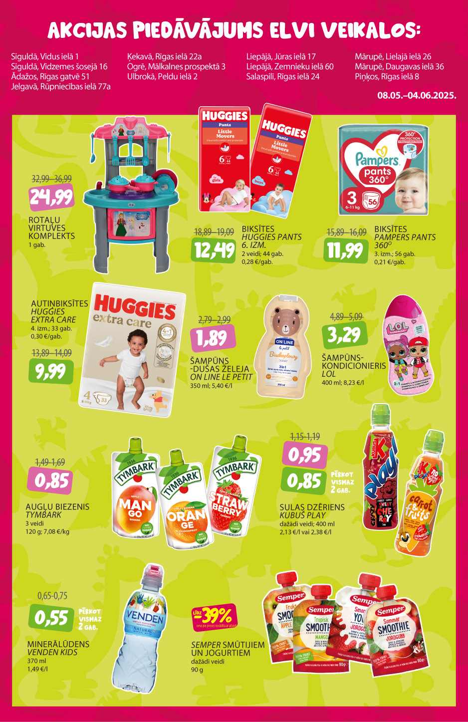 ELVI veikalos bērnu precēm – supercenas! Mazuļiem un viņu vecākiem par prieku piedāvājam lieliskas cenas populārākajām precēm. Supercenas bērnu precēm ELVI veikalos arī turpmāk – pērc šo un gaidi nākamos piedāvājumus!