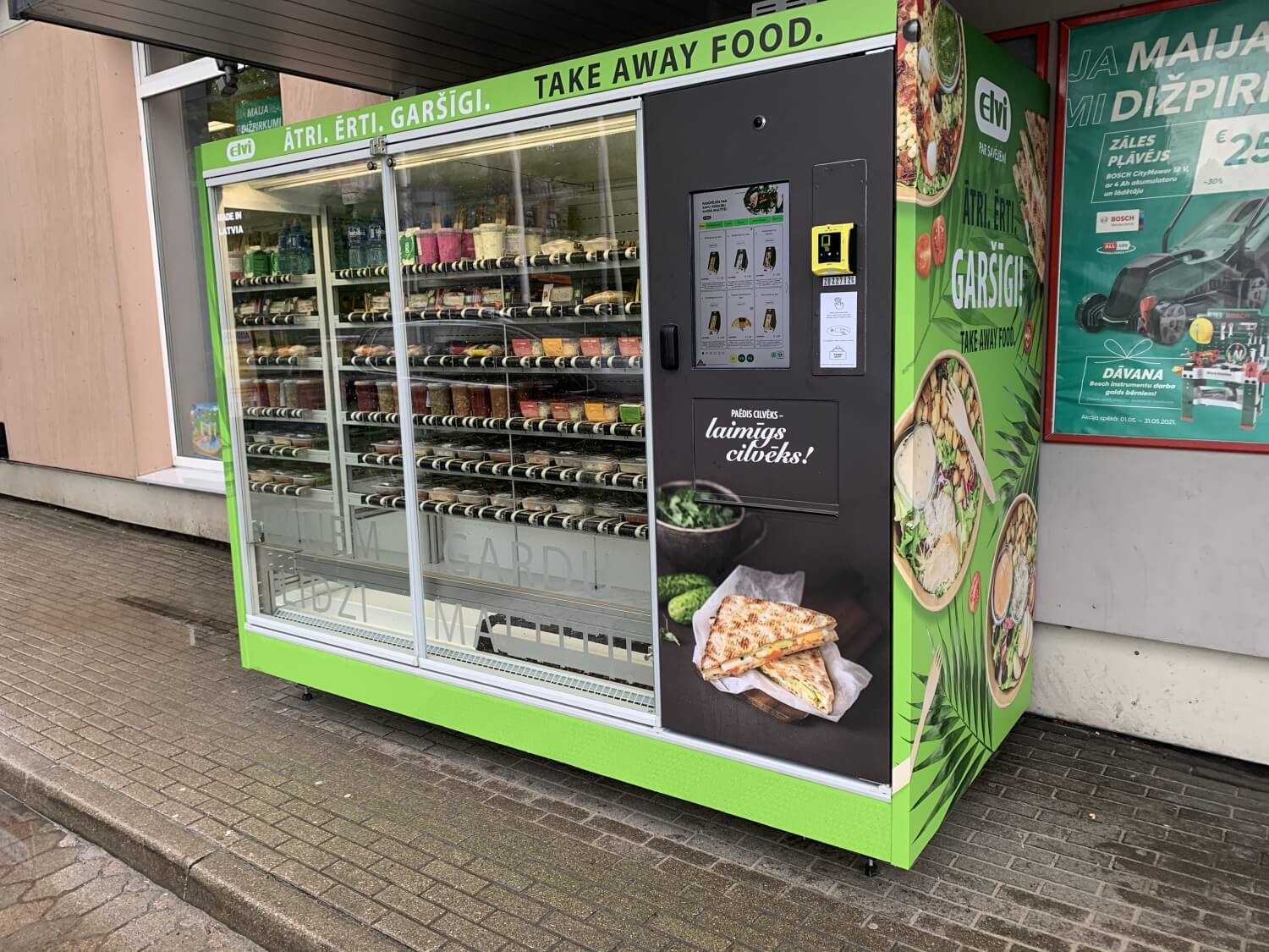 Investējot vairāk kā 80 000 eur, nacionālais pārtikas mazumtirdzniecības tīkls ELVI sācis uzstādīt gatavo ēdienu pārdošanas automātus, piedāvājot klientiem iegādāties ELVI pusdienu komplektus, zupas, salātus un sviestmaizes ārpus pārtikas veikala šim mērķim īpaši pielāgotās, Latvijā ražotās vending ierīcēs, kas nodrošina ēdienam ideālus uzglabāšanas apstākļus un klientiem ērtu norēķinu risinājumu. Pirmie trīs gatavo ēdienu pārdošanas automāti uzstādīti pie būvniecības namiem “Kurši” Rīgā, Dreiliņos un Salaspilī.
