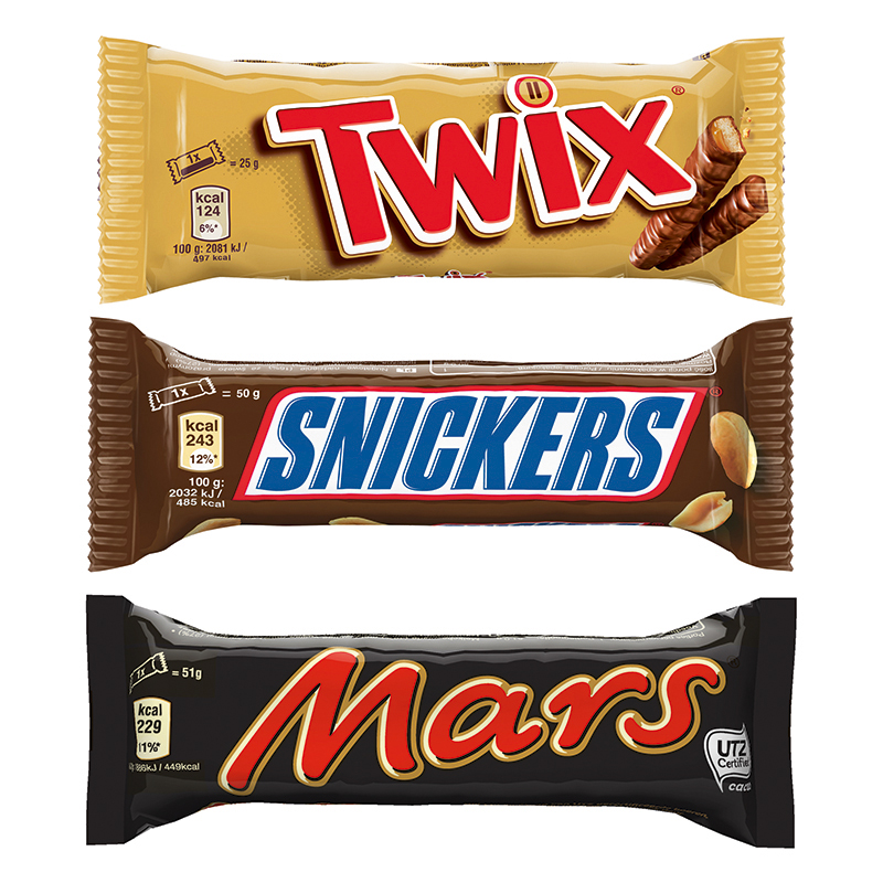 ŠOKOLĀDES BATONIŅŠ SNICKERS, TWIX VAI MARS