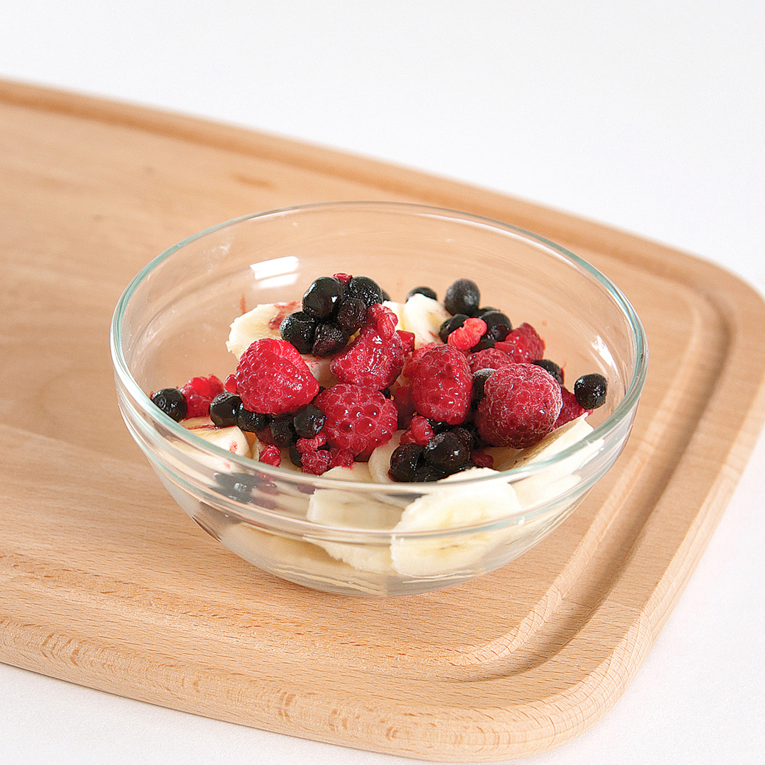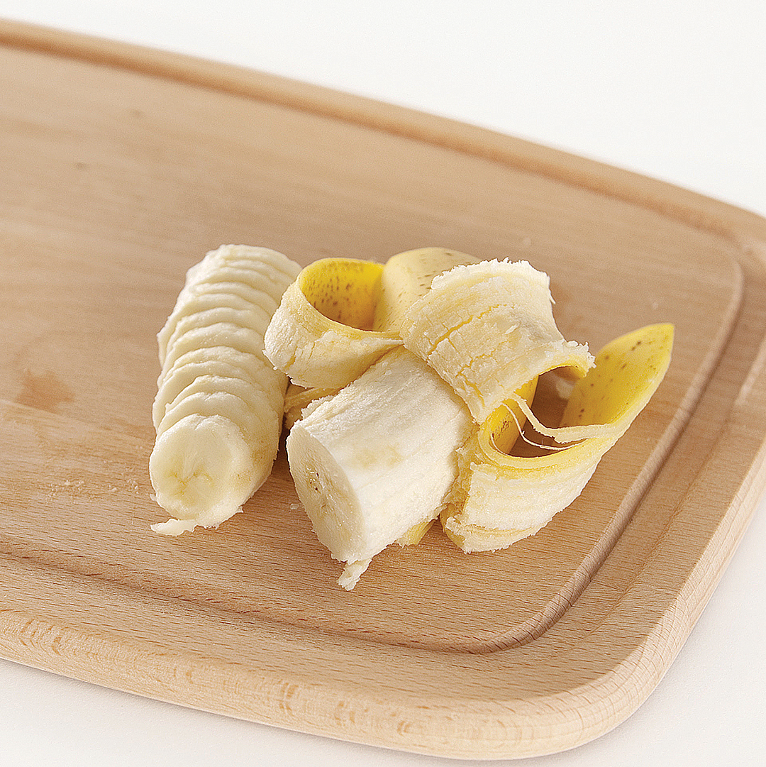 - Banānus sagriež plānās ripiņās.