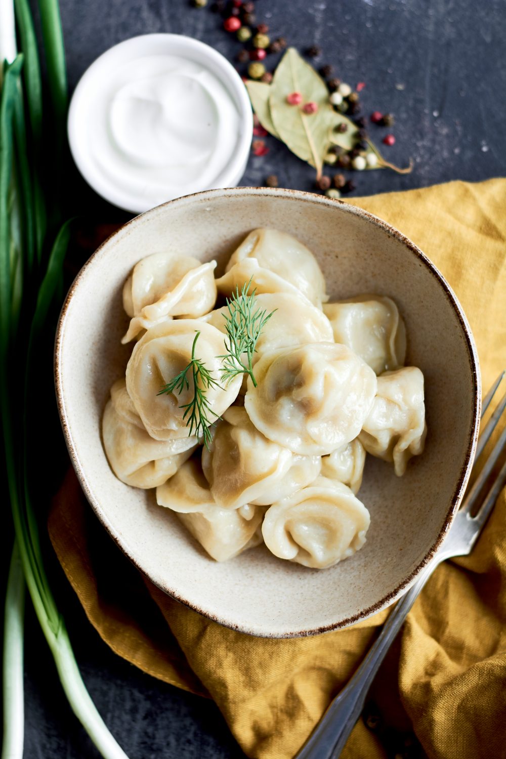 Lauru lapas, krāsainie pipari pelmeņu vārīšanai.