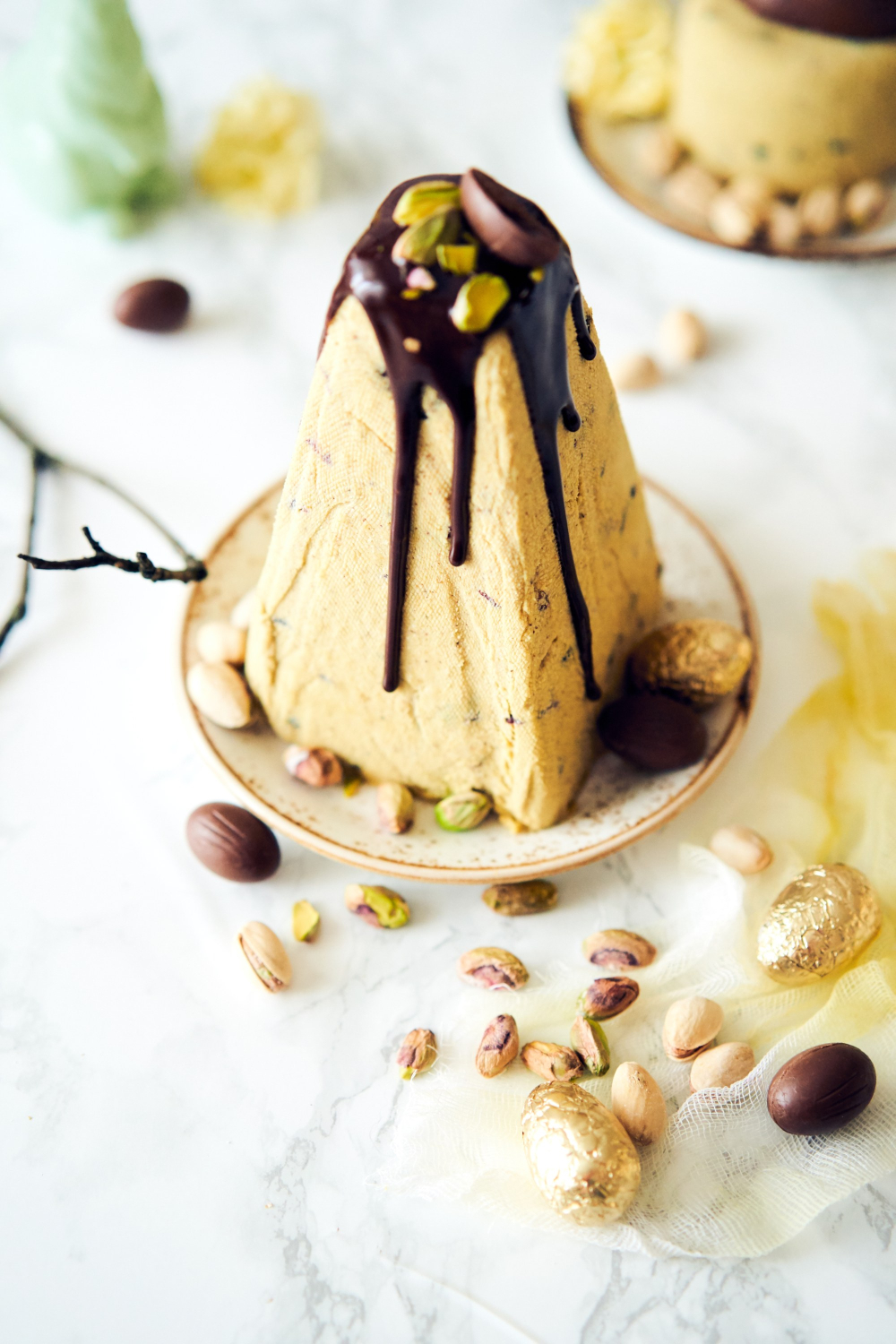 - Pirms pasniegšanas izņem pashu no marles, rotā ar šokolādes glazūru/šokolādes oliņām vai citiem dekoriem.